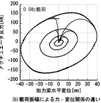 図-2 オイルダンパーを用いた制震装置の実験の様子と,実験で得られた力‐変形関係